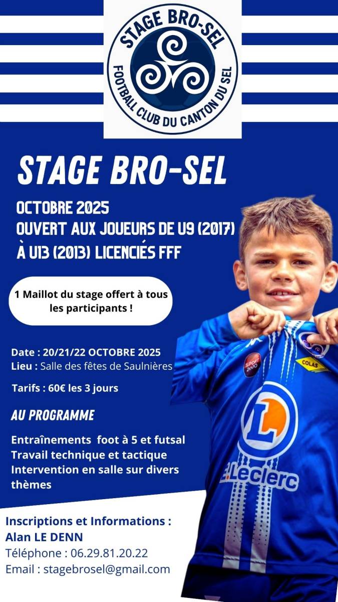 Le Football Club du Canton du Sel organise son stage Bro-Sel pendant les vacances scolaires d’octobre !